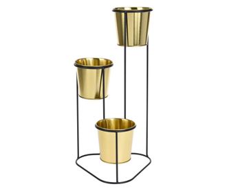 Suport pentru flori din metal auriu, 3 ghivece, 24x22x47 cm
